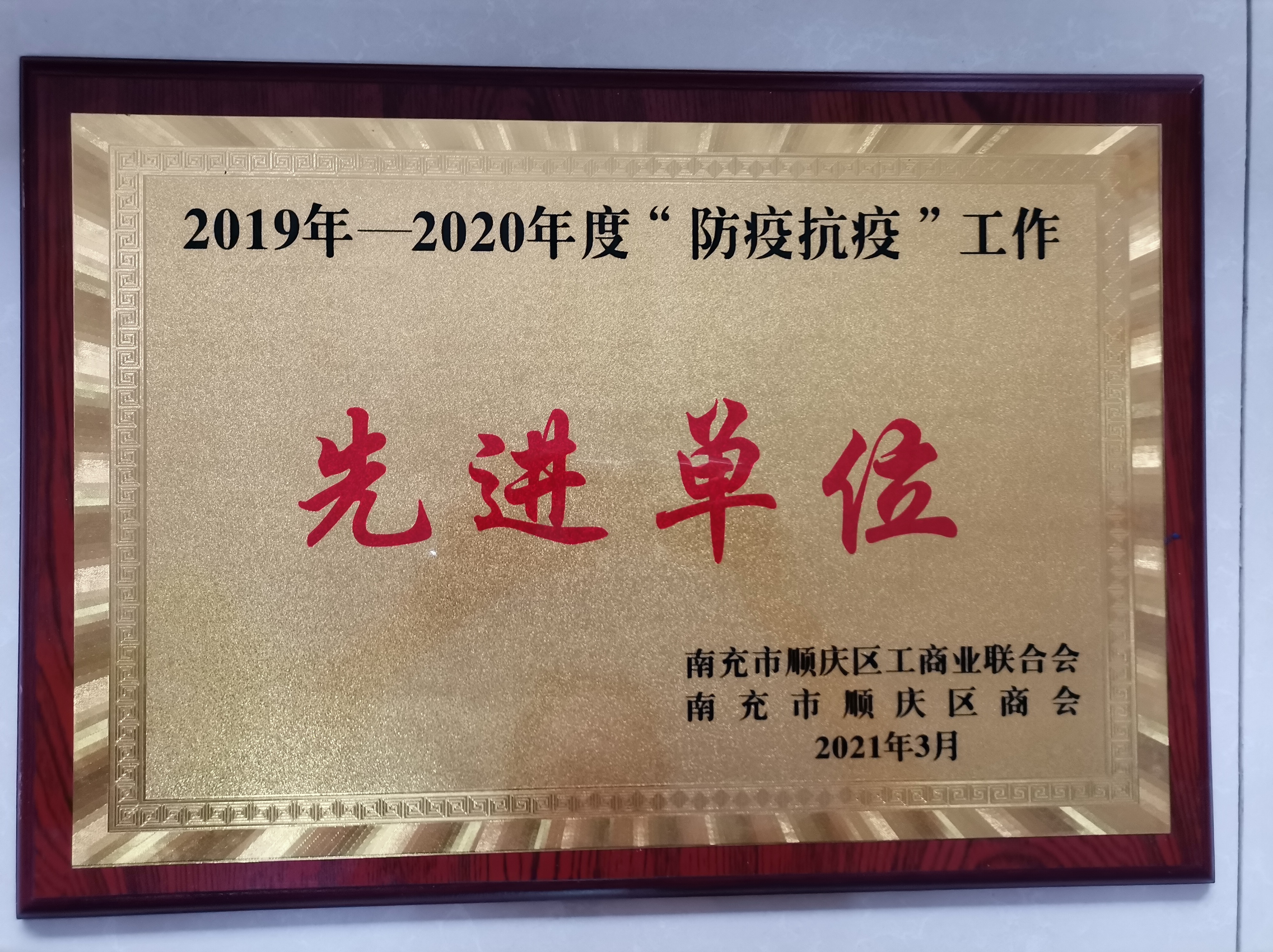 我公司榮獲2019年-2020年度“防疫抗議”工作先進單位